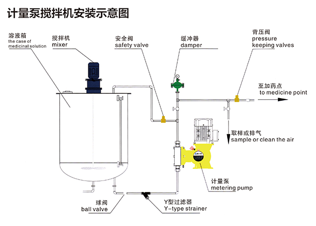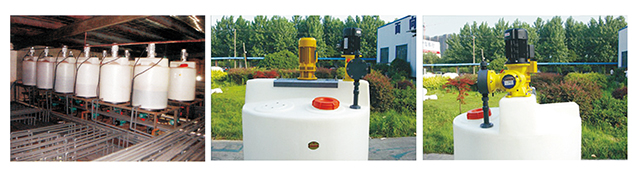 攪拌桶可與任何加藥泵、計量泵配套使用,方便又耐用,可廣泛配套使用在各類水處理工程,效果極佳。對于選用J系列機械隔膜式計量泵,一般情況在計量泵出口處必須選擇安裝安全閥防止過壓對計量泵隔膜的損壞。